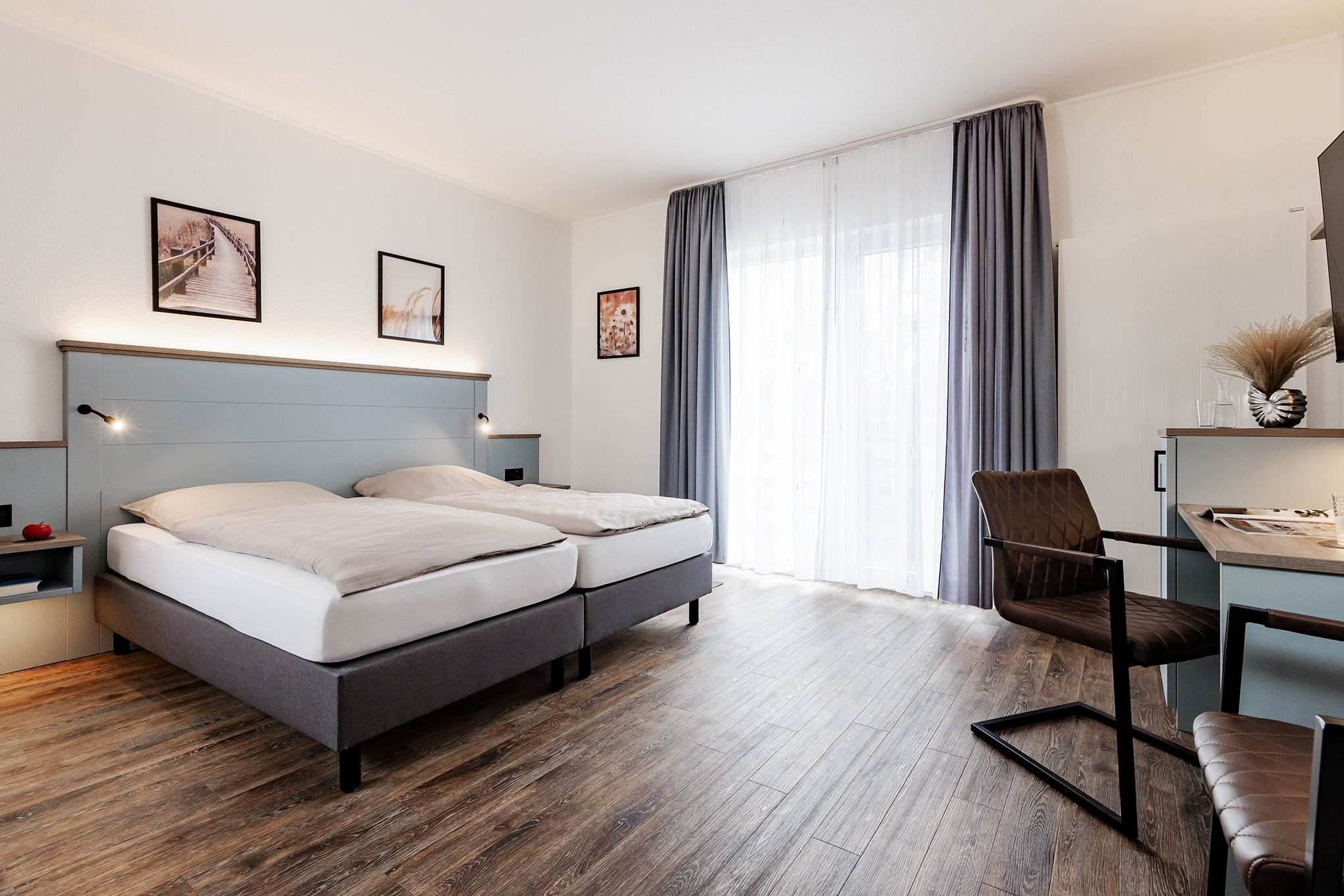 Die Doppelzimmer sind zwischen 20 und 23 qm groß inkl. Bad